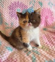 We get so many colors from our beautiful parents! Tortoiseshell , calico, color points, bicolors, vans, and tabby! Our lines produce exotic shorthairs, exotic longhairs, and we have strong persian lines as well!